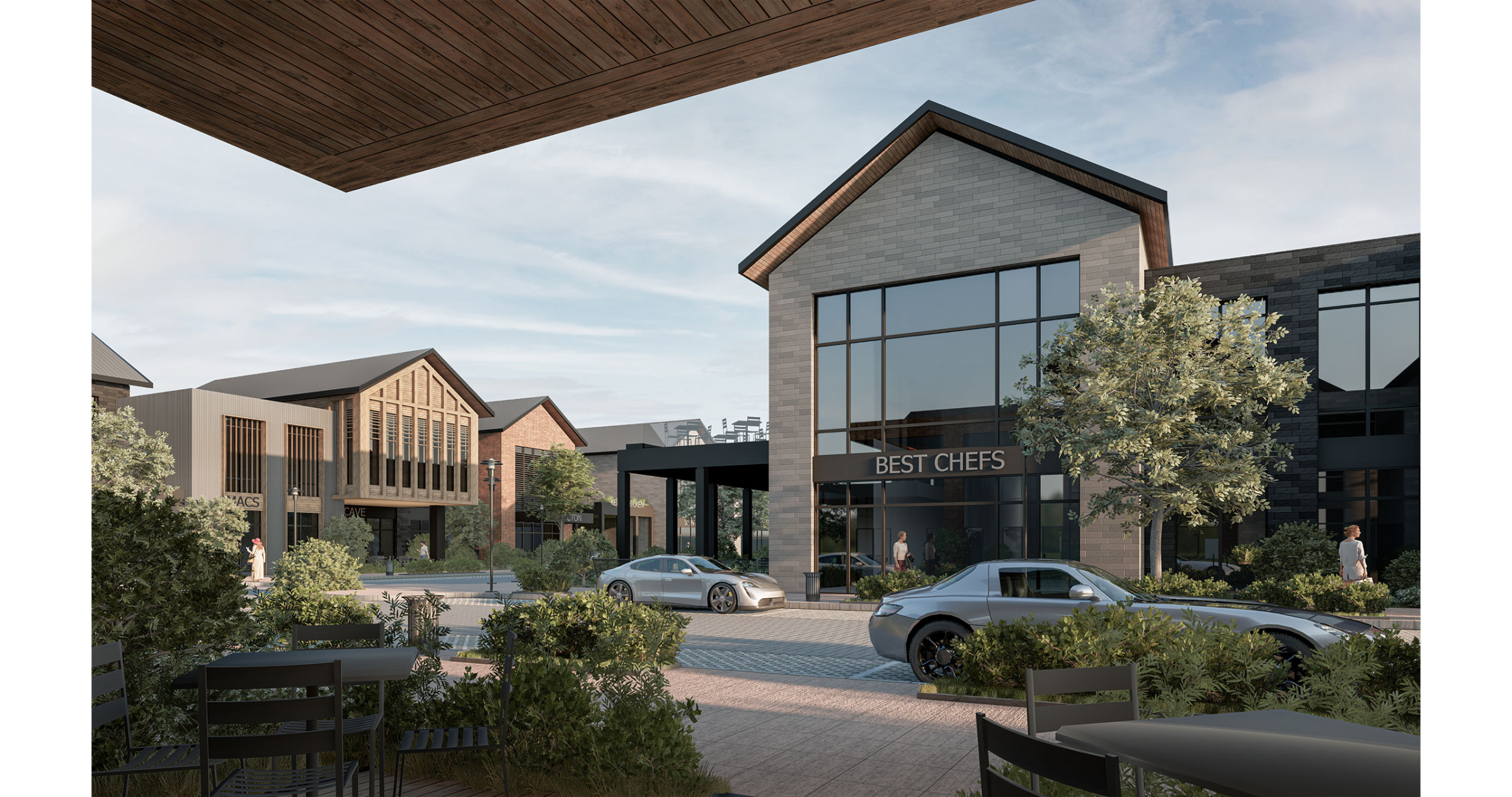 The commercial units, spanning 2 floors, have been customized with setbacks, projections, overhangs, terraces, and roof variations, aiming to create a sense of a small town.